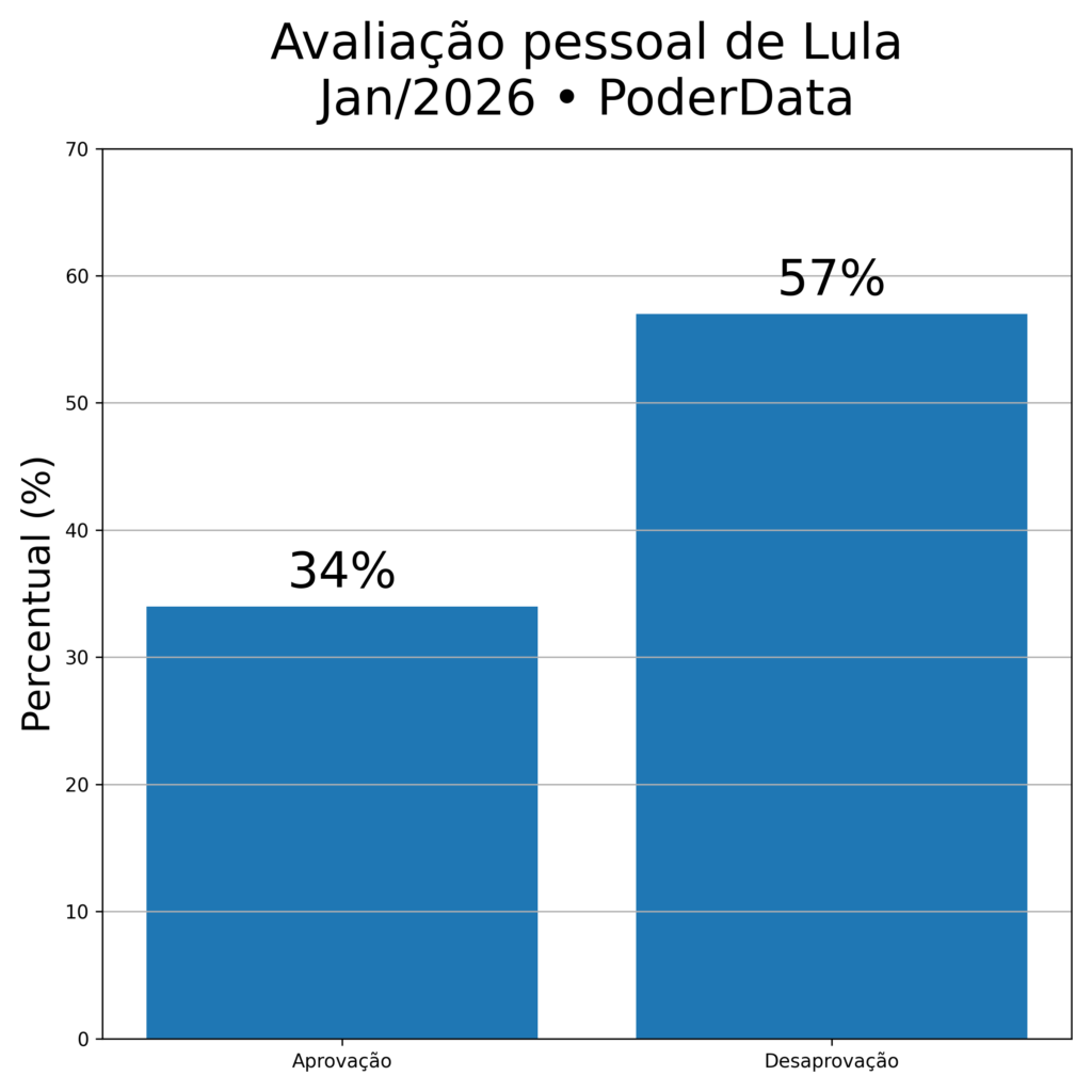 - O levantamento foi feito pelo instituto PoderData entre os dias 24 e 26 de janeiro de 2026, com 2.500 entrevistas em 111 municípios, margem de erro de ±2 pontos percentuais.