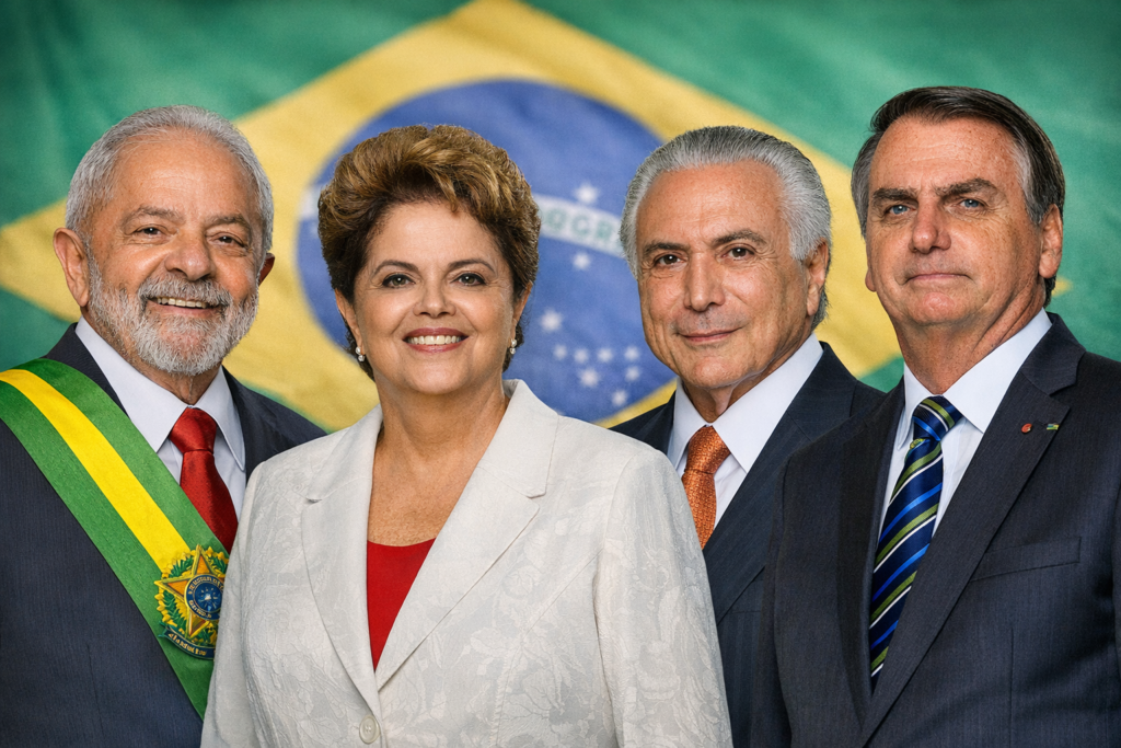 (Lula, Dilma, Temer e Bolsonaro. Imagem feita por inteligência artificial)