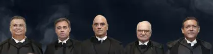 (Na ordem, os ministros do STF: Flávio Dino, André Mendonça, Alexandre de Moraes, Edson Fachin e Cássio Nunes Marques)